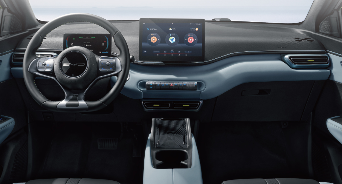 置身海鸥车内,熟悉的内饰布局扑面而来,海鸥采用了和海洋系列明星车型海豹类似的家族式设计语言,尤其是标志性的三辐式方向盘有着较高的辨识度。10.1英寸的悬浮式自适应旋转中控屏和7英寸的液晶仪表奠定了海鸥车厢科技氛围的基础。